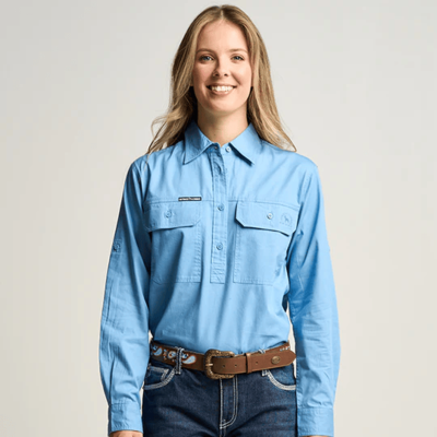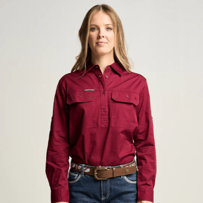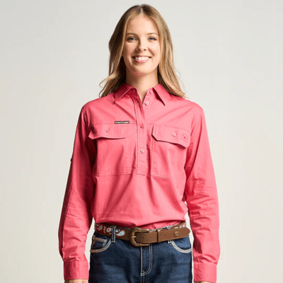 OBCWWS001-GUM SOMERSET | Womens Half Button Long Sleeve Work Shirt - Gum Leaf Green